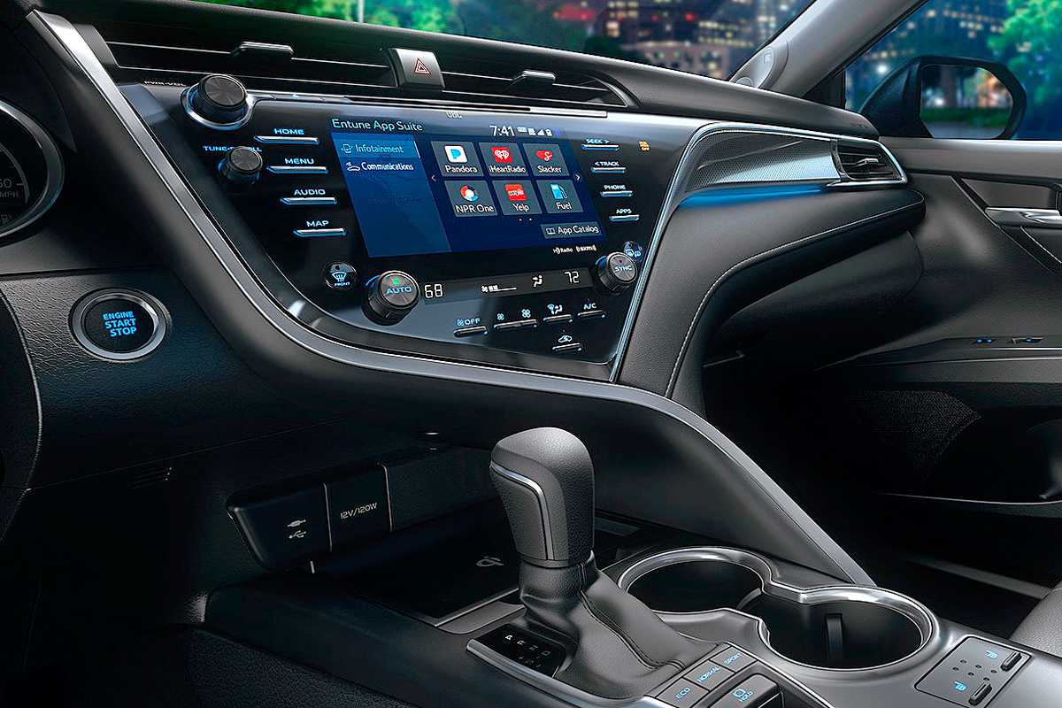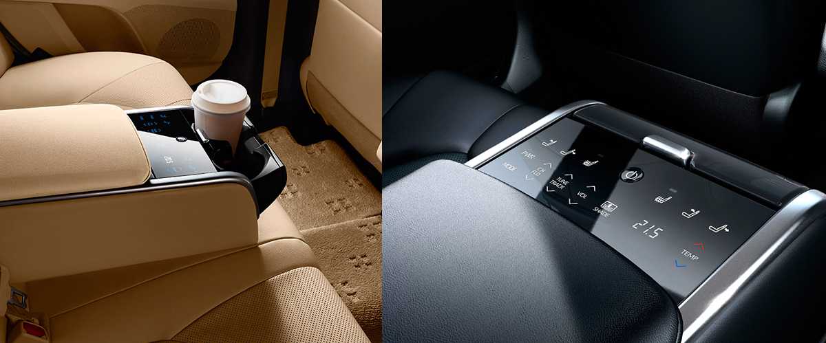 В тех регионах, где у Camry сложился имидж бизнес-седана, Toyota по-прежнему предлагает богатый «командный пульт» для заднего дивана. На этих фото — оснащение китайской Camry. Почти все кнопки стали сенсорными, но функционал прежний: управление климат-контролем, «музыкой», подогревом дивана и регулировкой наклона спинки