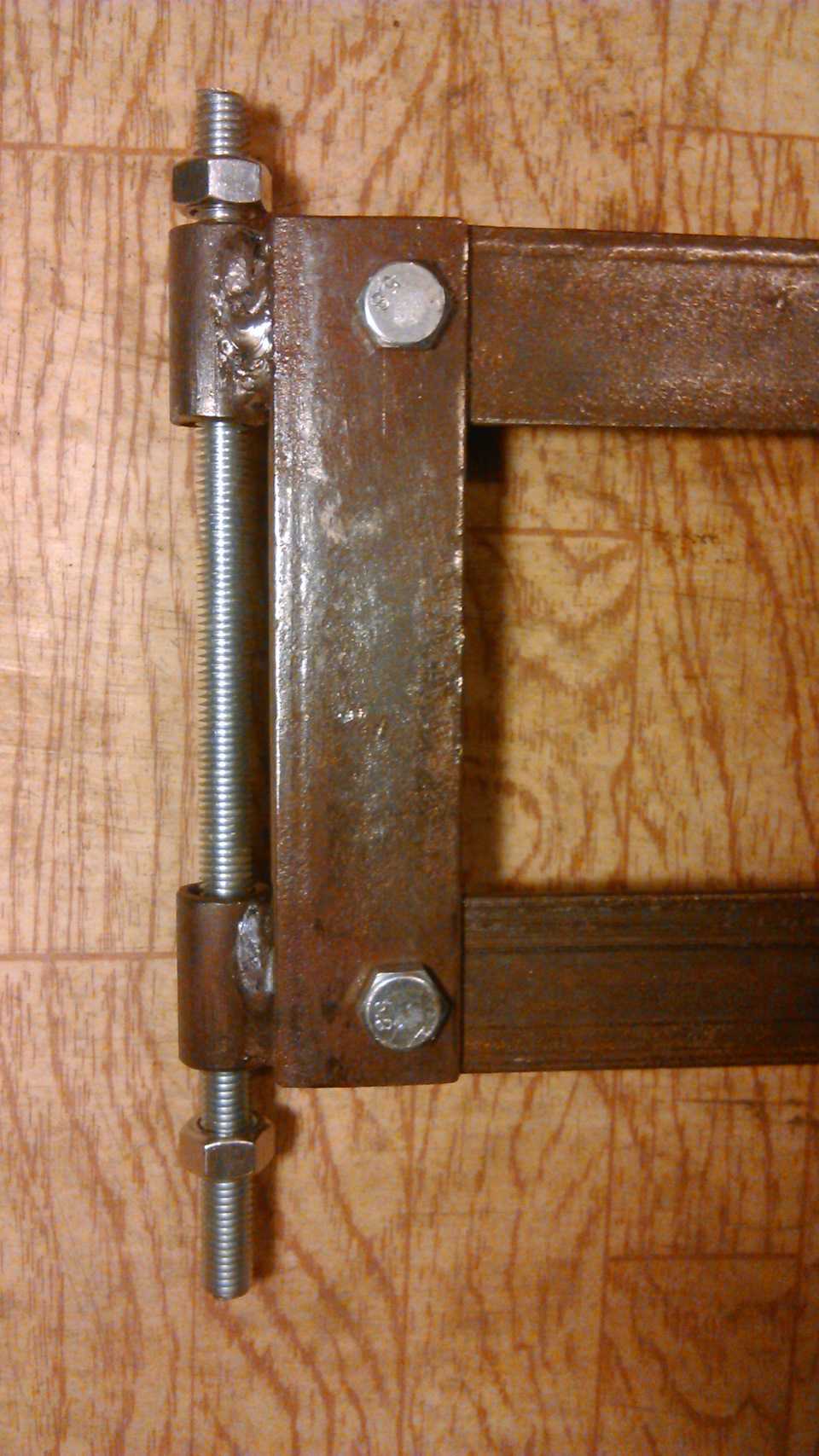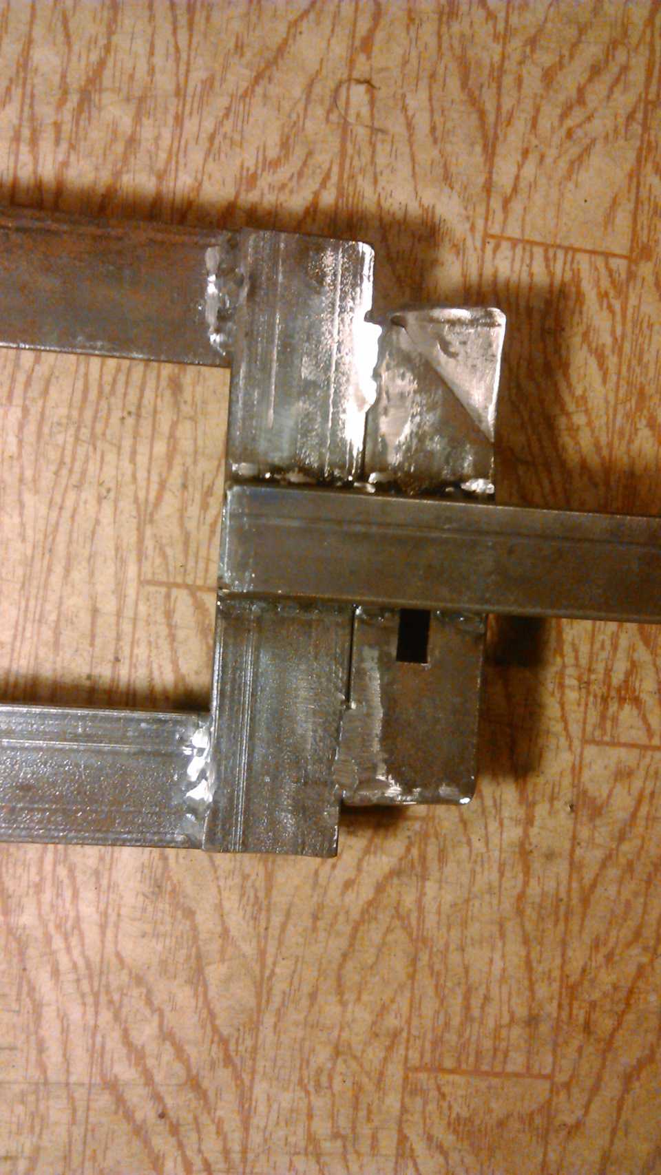 Единственное, такого мощного уголка как на видео в обрезках у меня не было, заюзал то, что не жалко было — уголок из каркаса панцирной кровати. 40-й. Думаю, хватит и его для легковых-то стоек.