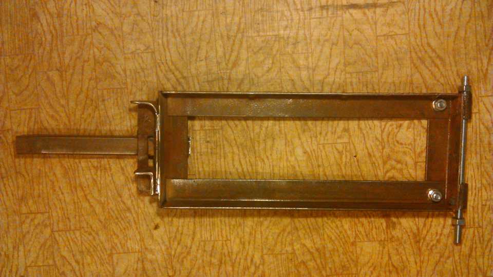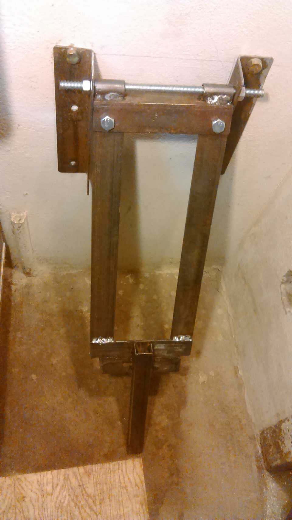 Из-за ручки приладу не удается в положении «хранение» просто приставить к стене, опустив вниз (упирается в пол). Надо поднимать вверх и делать там фиксатор (сначала была мысля такая), затем решил, что не стоит усложнять, мне эта прилада понадобится в лучшем случае 1 раз в 2-3 года, буду просто выкручивать шпильку и крепить приладу в направляющих (позже доделаю и выложу).