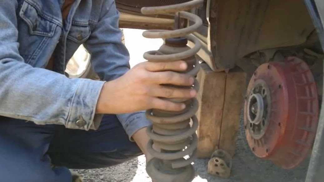 При достаточной высоте поднятия снимаем пружину, а также проставки.
