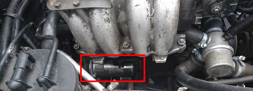 Топливная рампа закреплена двумя винтами на впускной трубе.