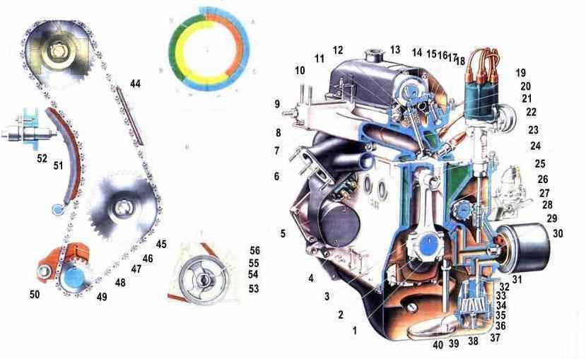 Последовательность работ при натяжении цепи как в двигателе с инжектором, так и с карбюратором состоит из следующих этапов: