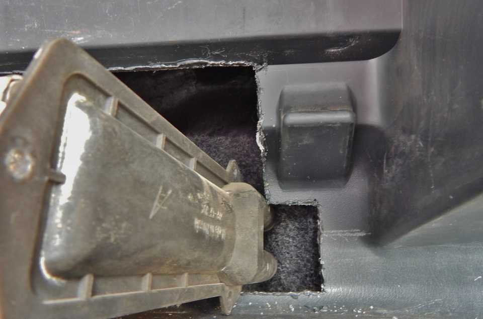 Далее нужно выкрутить еще одно крепление, находящееся со стороны пассажира под нижней частью центрально консоли. После этого торпеду можно легко приподнять, чтобы она осталась в таком же положении, установить под нее упор подходящей длины, достаточно бруска сечением 50х50 мм длиной около 40 см.