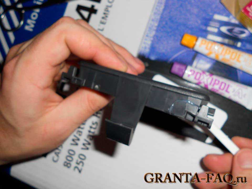 Решить проблему можно аналогичным образом с помощью клея, либо использовать привычный для русской машины саморез. Вот и все решения ремонта бардачка Гранты, который можно выполнить своими руками.
