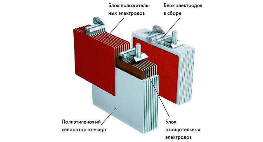 Для зарядки аккумулятора на его клеммы подается напряжение. В результате ток начинает поступать в отдельные секции.