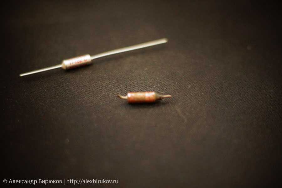 Главная особенность, термопредохранитель нельзя греть, следовательно, и паять необходимо крайне аккуратно. Если не уверены в своих силах, то можно просто обжать выводы предохранителя плоскогубцами.