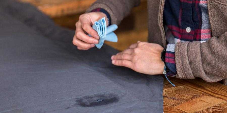 Сразу нужно зачистить поврежденную область. Для этого берем ацетон и наносим на поверхность с радиусом захвата 2–3 см. Затем ждем несколько минут и зачищаем матрас от ворсинок при помощи ножа или ложки. Вырезаем резиновую заплатку на 1 см больше, чем разрез и наносим тонкий слой клея.