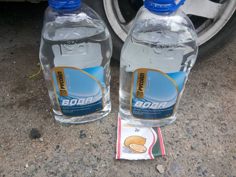 На 10 литров дистиллированной высыпаем 1 пакетик лимонной кислоты. Данный раствор заливаем в расширительный бачок и запускаем двигатель.