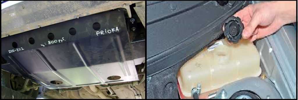 Загоняем автомобиль на яму, снимаем защиту картера двигателя и откручиваем крышку расширительного бачка.