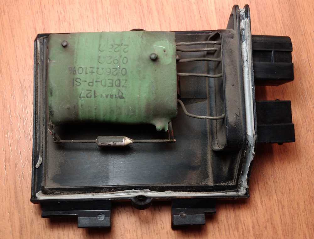 Третий способ, и на нём хотелось бы остановиться более подробно, обеспечивает доступ к реостату и его замену за считанные минуты. По сути, мы отключаем от схемы реостат, находящийся в верхней части отопителя, и выносим в любое удобное для нас место. Реостат необходимо поместить в короб, на который нужно закрепить кулер (для охлаждения). Затем установить под торпедой (ну или где вам удобнее) и, выключив из схемы нерабочий резистор, подключить новый, не забыв подать питание на кулер. Теперь отопитель будет работать в штатном режиме. И после такой модернизации при наличии первых симптомов выхода из строя регулятора, замена займёт порядка 20 минут. А так как резисторы ломаются очень часто, то в дальнейшем это вам сэкономит большое количество времени.