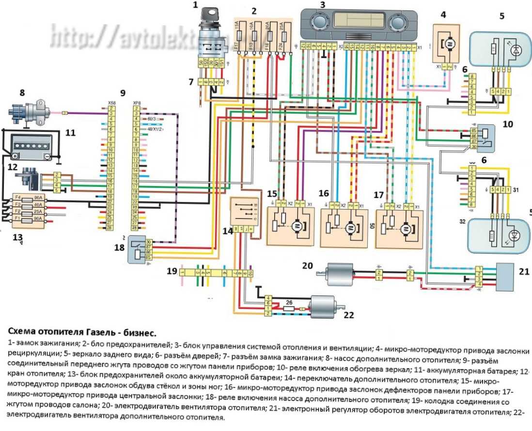 Установка энергоемкого оборудования привела к возрастанию нагрузки в бортовой сети, что потребовало и переделки электрической схемы проводки Газели. Естественно, что автопроизводитель стал отгружать в сервисные точки и магазины автозапчастей комплекты электропроводки, соответствующие разным силовым агрегатам .