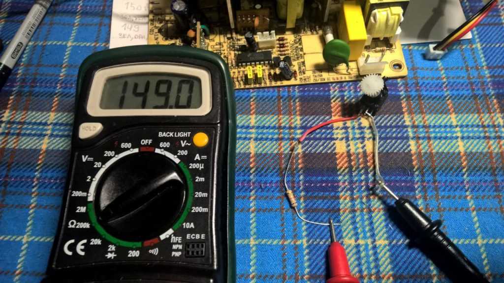 Когда настройка выходного напряжения закончена, можно измерить текущее сопротивление (составило 149 кОм) и заменить постоянным резистором.