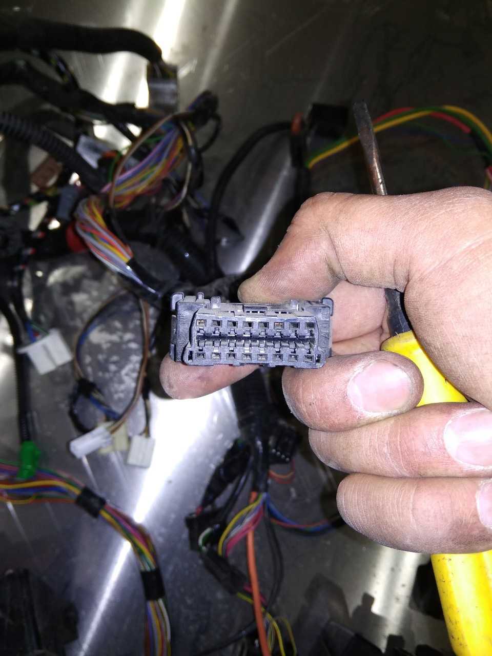 В данной машине один провод не имел разъёма в пределах досягаемости – провод светодиода сигнализации. Но он и не штатный. Был перерезан с последующим его восстановлением после окончания всех работ.
