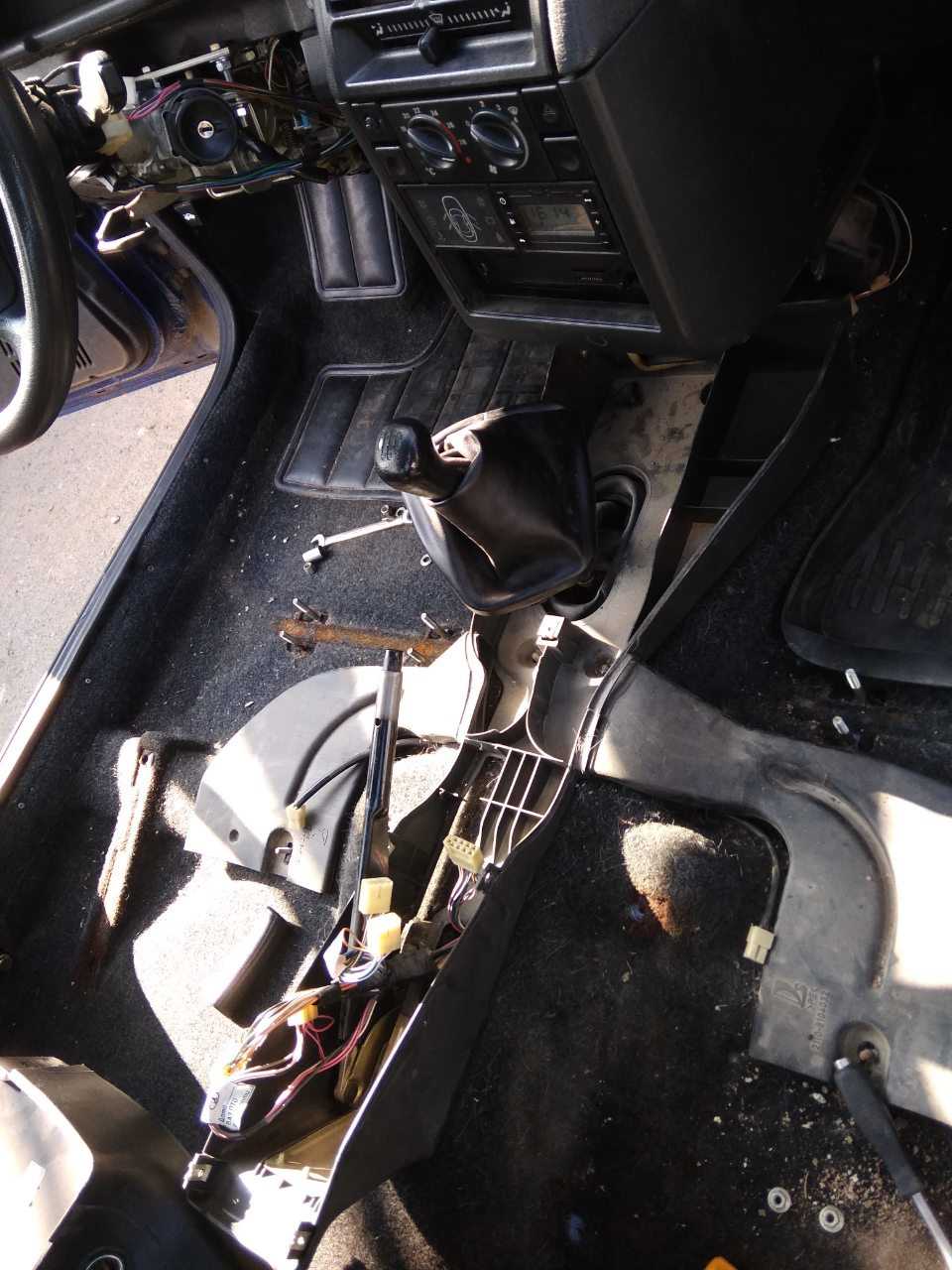 - Снять левый щиток туннеля, и аналогично правый щиток.