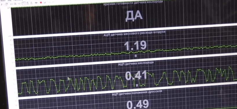 По мере прогрева лямбды уровень напряжение будет расти (тоже в пределах до 1В), и по мере выхода на рабочую температуру до 300 – 400 0С она начинает свои осцилляции.