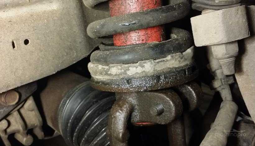 Необходимо проверить ветки пружин, особое внимание обратить на резиновые опорные вкладки, чтобы не было никаких трещин
